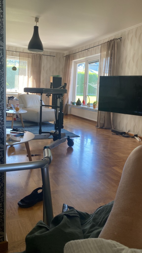 Efter en vecka på ortopedkliniken kom jag hem – i fredags – och är fortfarande bunden till sängen. Hemtjänsten kommer hem och hjälper mig på toaletten tre gånger om dagen. Jag knaprar oxycontin som det vore godis.. nej, bara det som är ordinerat, men det är ganska mycket.